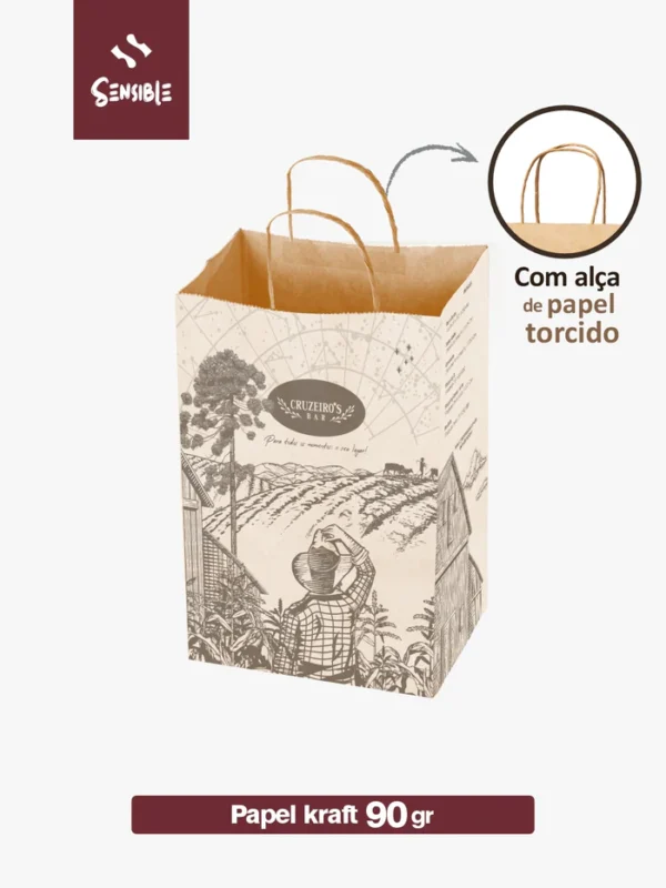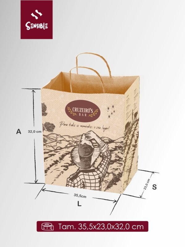 Sacola Kraft Delivery com Alça CRUZEIRO’S BAR 35,5×23x32cm – 500un